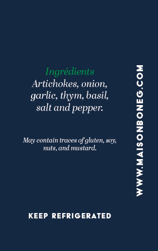 Ingredients: Onion, artichoke, thyme, basil, corn starch, milk, olive oil.