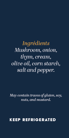 Ingredients: Onion, mushroom, thyme, salt, black pepper, corn starch, milk.