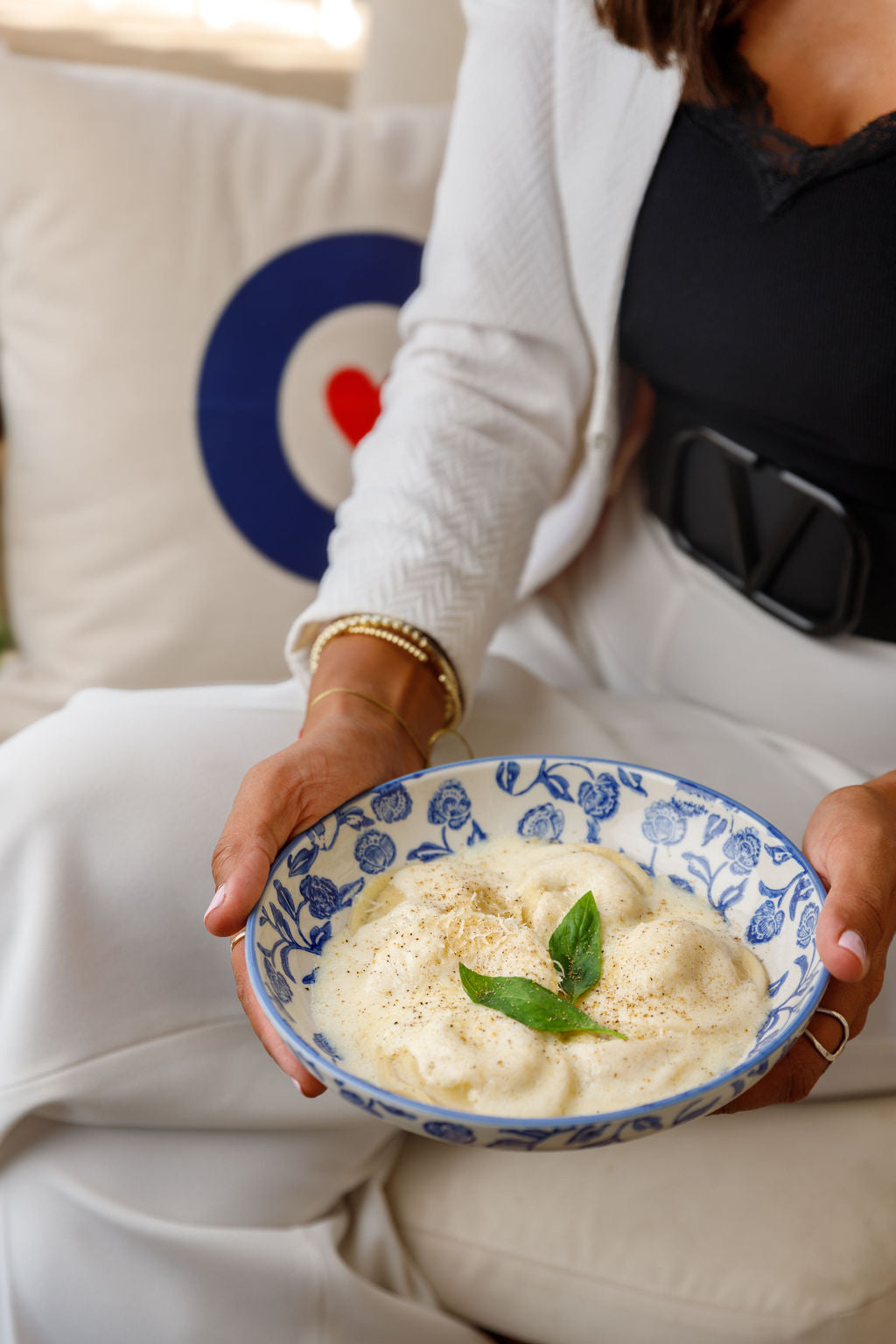 Filling : Chicken, mushrooms, cream, garlic, ravioli.