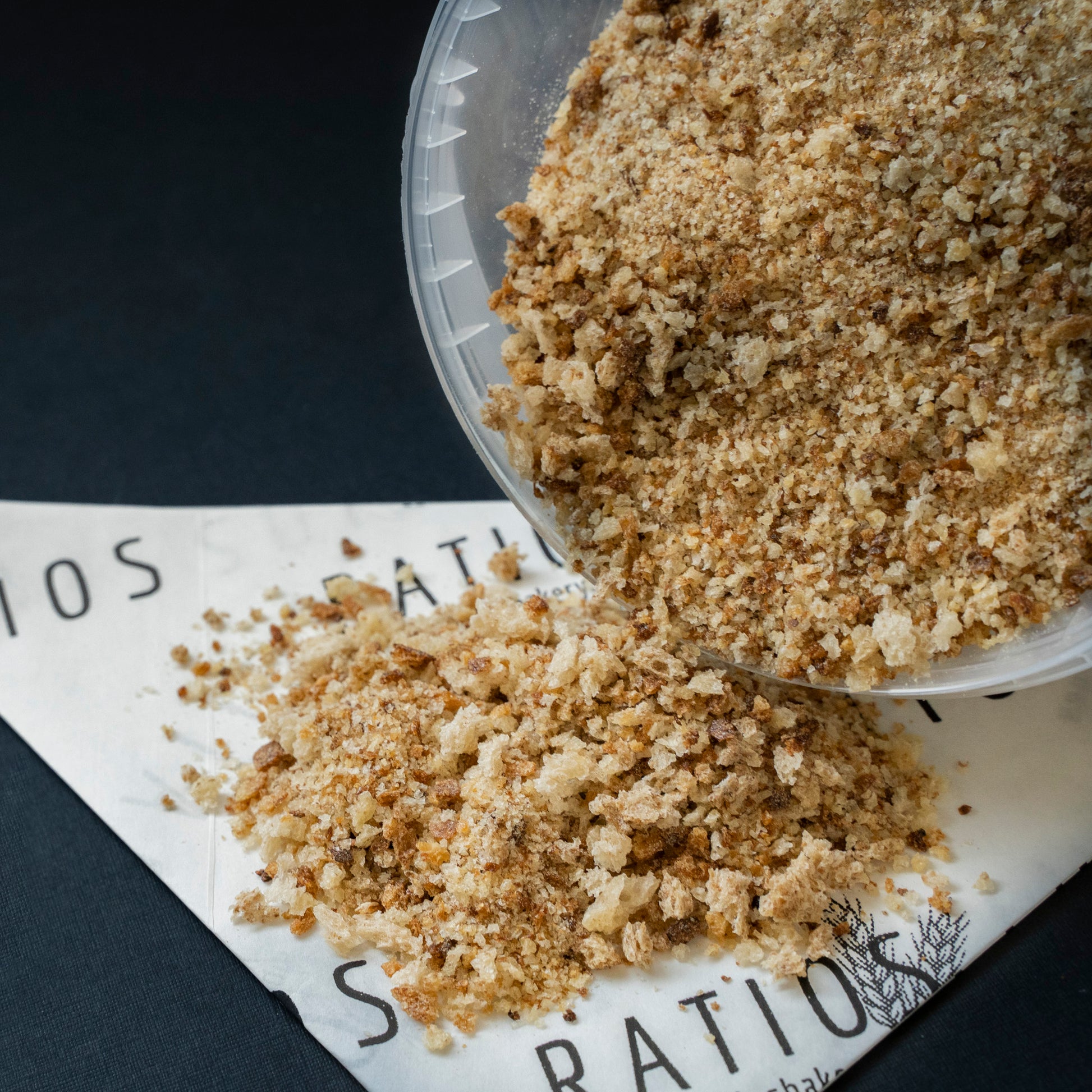 Our own sourdough breadcrumbs. Add crunchy texture to pasta, on tops of casseroles, as a binder for meatballs or burgers; or as a crispy finish to baked and fried dishes. 450g/1lb pack.